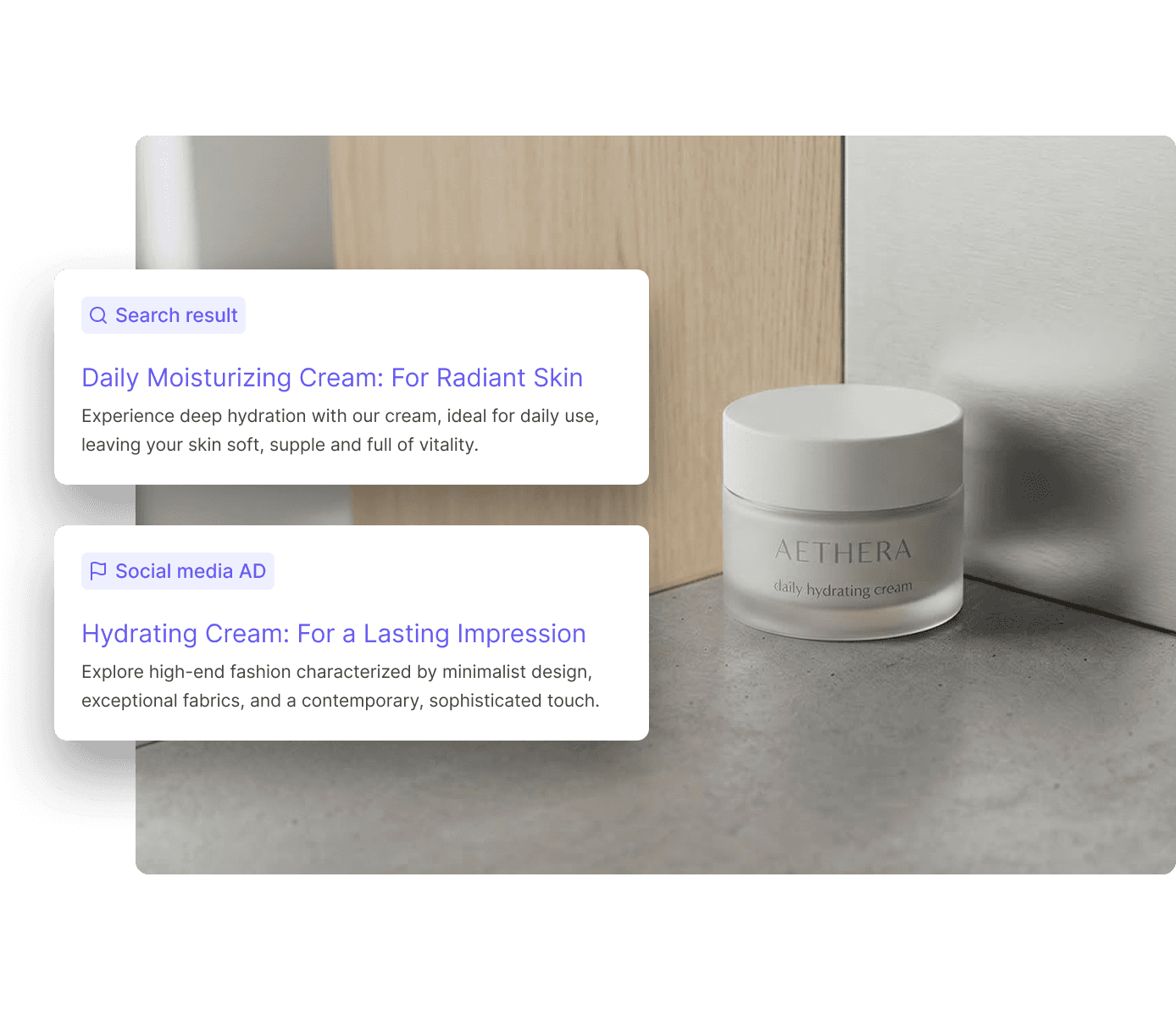 AI-powered shopping assistants read your brand.com alongside every retailer listing when deciding which products to cite. Consistent product text across all touchpoints drives ranking. Newtone keeps every touchpoint aligned from a single source of truth.
